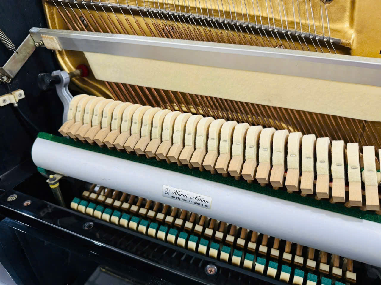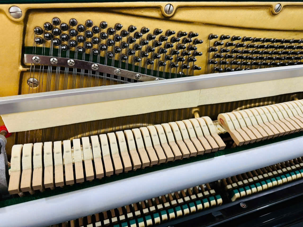 Búa đàn được làm từ lông cừu (wool felt) cao cấp, mang lại độ bền cao và ít chịu ảnh hưởng bởi môi trường, cho phép mỗi hợp âm đều tấu lên rõ ràng. Một số phiên bản hiếm còn sử dụng búa Louis Renner, nâng tầm đẳng cấp cho cây đàn. Bộ máy đã được kiểm tra và bảo trì kỹ lưỡng trong quá trình phục hồi, đảm bảo hoạt động 100% tốt.